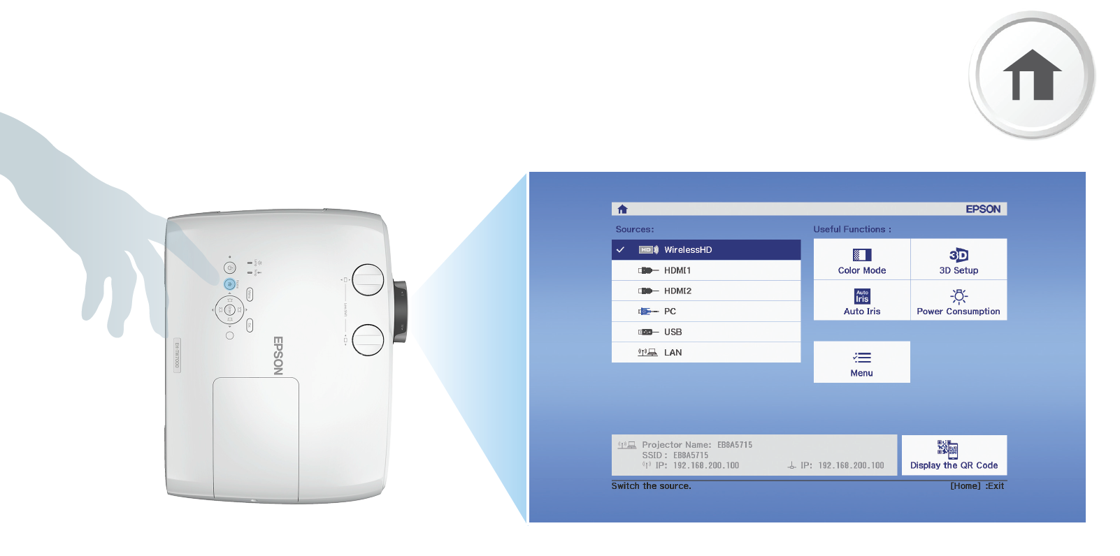 Direct access to the menu via the Home Button for various settings such as Colour Mode and 3D capabilities for an easy set-up.